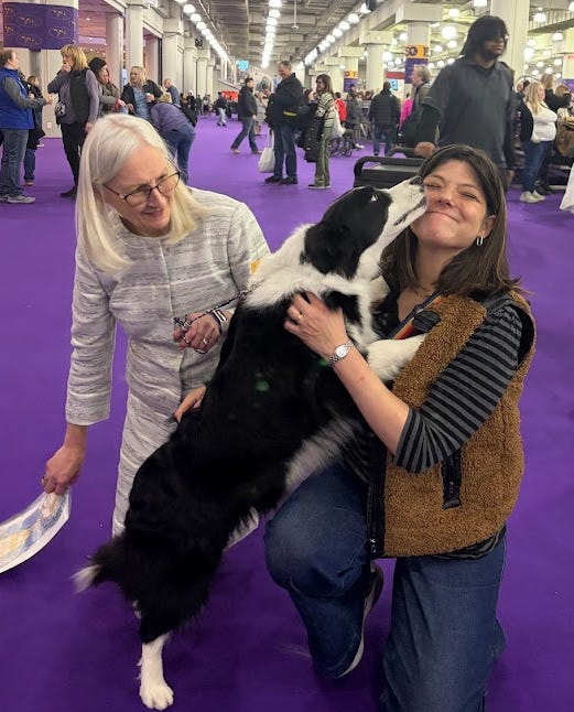 Lili said she was going to be in town and asked if I wanted to go to the show and I said sure, if only because it’d be a chance to hang out with the only professional dog illustrator I have ever met. The day before, at the portion of the show that was held at the Javits Center, Lili’s friend Laura joined us, as did her friend Pilley Bianchi, who is the author of For The Love of Dog, and the human sister of the dog Chaser, the border collie who famously demonstrated her knowledge of over 1000 words. (Her late father was Chaser’s owner, the behavioral psychologist John W. Pilley; Bianchi helped train Chaser).