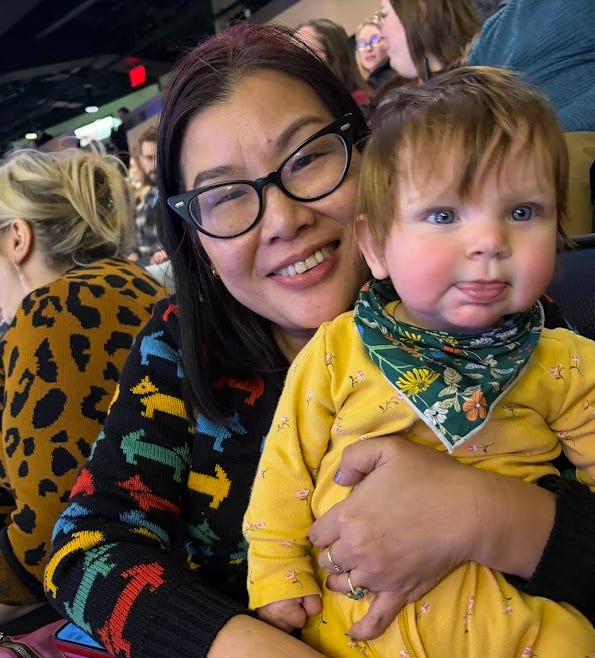 Rose is still too little to be left with a sitter, and my husband was attending a lecture about Aquinas given by a priest visiting from the Vatican— arguably the less baby-friendly event.